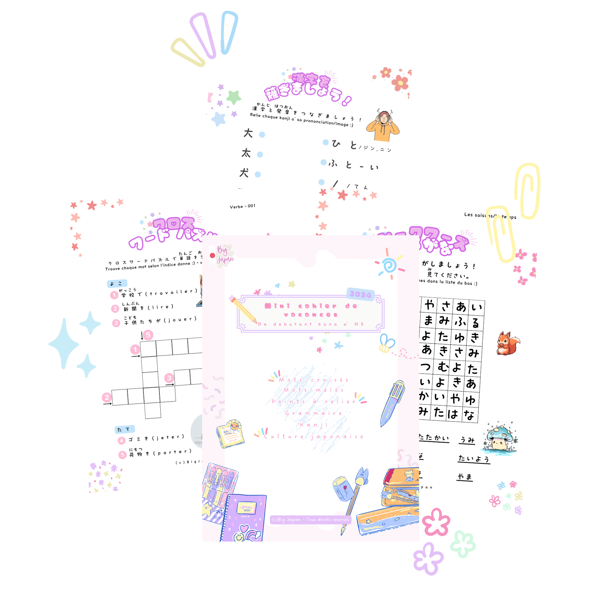 Envie de progresser en japonais pendant tes vacances ? Mon cahier de vacances gratuit est là pour t'aider ! 📘 Profite de contenus éducatifs et ludiques spécialement conçus pour les débutants kana ET N5.